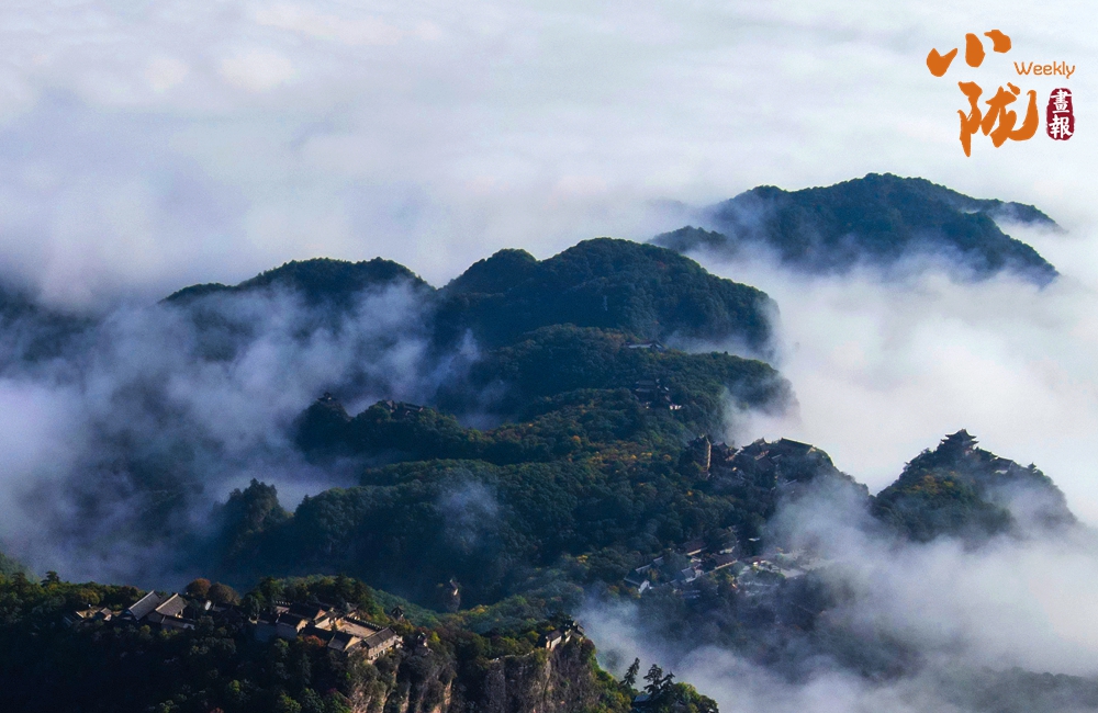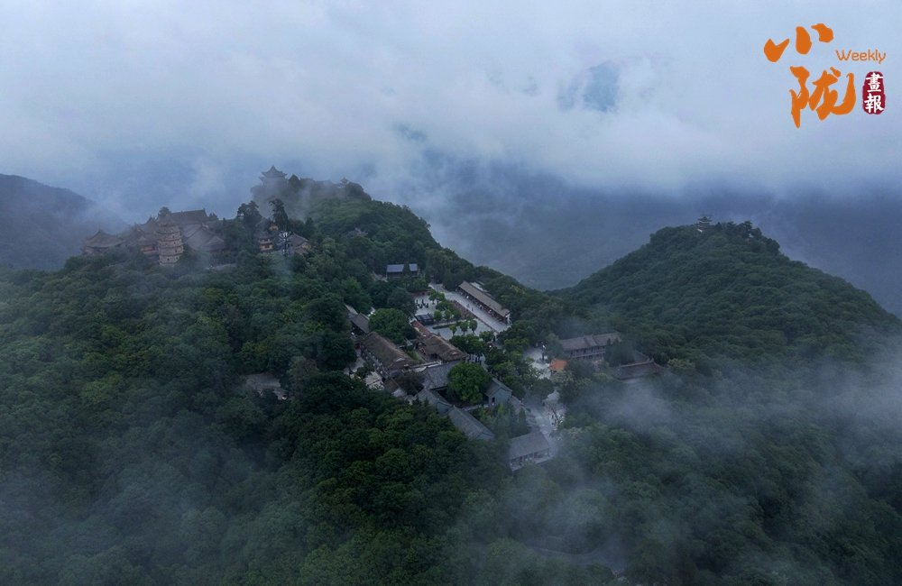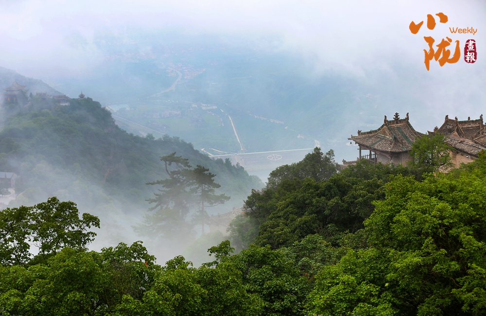 云霧繚繞,山水與寺廟隱現(xiàn),營(yíng)造出神秘且令人向往的視覺(jué)效果。站在半山腰,背靠懸崖,深邃不可見(jiàn)底,不禁生出“山登絕頂我為峰”的豪情。然而,世間萬(wàn)物,瞬息萬(wàn)變,是否成為峰巔之巔又何妨?