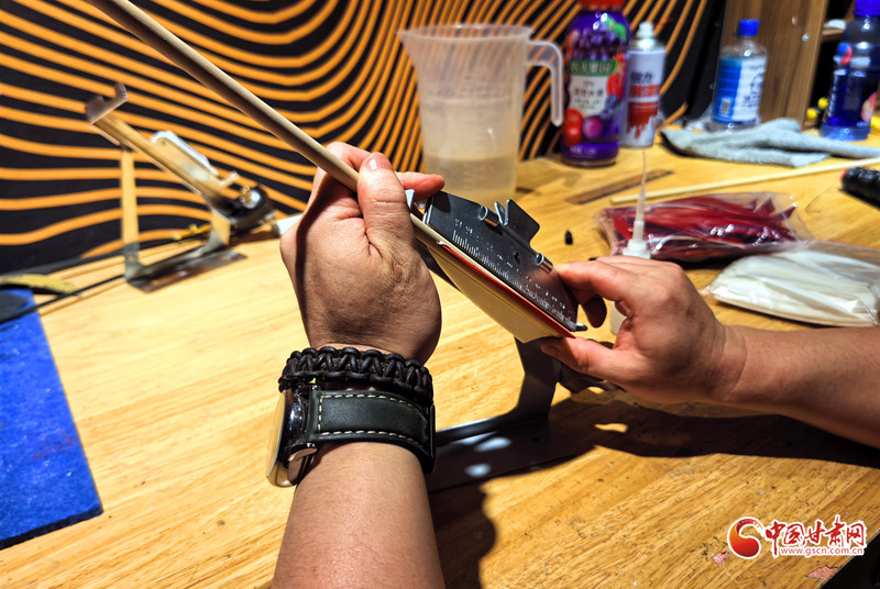2011年,還是大學(xué)生的謝建戈在百度貼吧結(jié)識(shí)了山東臨沂“高氏傳統(tǒng)弓箭”非遺傳承人高超。囊中羞澀的他提出“先貨后款”,高超被這份赤誠(chéng)打動(dòng),寄來(lái)第一套玻片弓料。一個(gè)月后,生活費(fèi)一到賬,他第一時(shí)間把錢(qián)打了過(guò)去——網(wǎng)絡(luò)那端的高超從此記住了這個(gè)甘肅小伙。2012年,他做出人生第一把玻片弓。
