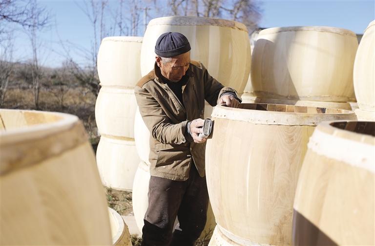 冬日農(nóng)閑時(shí)節(jié),在甘肅省定西市安定區(qū)鳳翔鎮(zhèn)北廿鋪村,牛皮鼓手工制作藝人利用晴好天氣趕制訂單牛皮鼓,供應(yīng)市場。該村每年可制作各類牛皮鼓3000余面,牛皮鼓手工制作涵蓋選材、解板、刨制鼓腔、蒙皮、釘釘?shù)榷嗟拦ば?,再?jīng)數(shù)天晾曬和反復(fù)調(diào)試才能最終制成。牛皮鼓是我國的傳統(tǒng)打擊樂器,在西北地區(qū)用于民間社火表演等活動(dòng)。