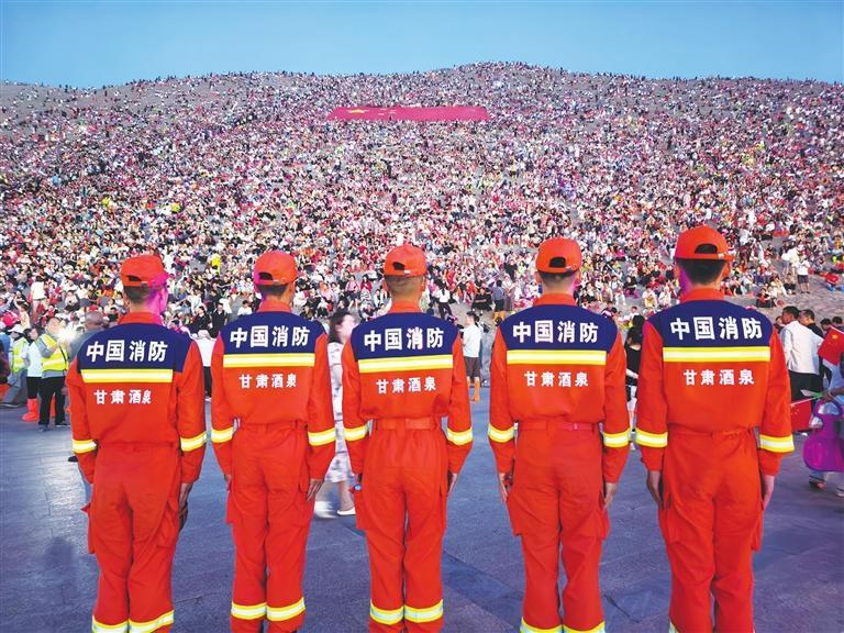 敦煌市消防救援大隊在鳴沙山月牙泉景區(qū)開展萬人星空演唱會消防安全防范工作。