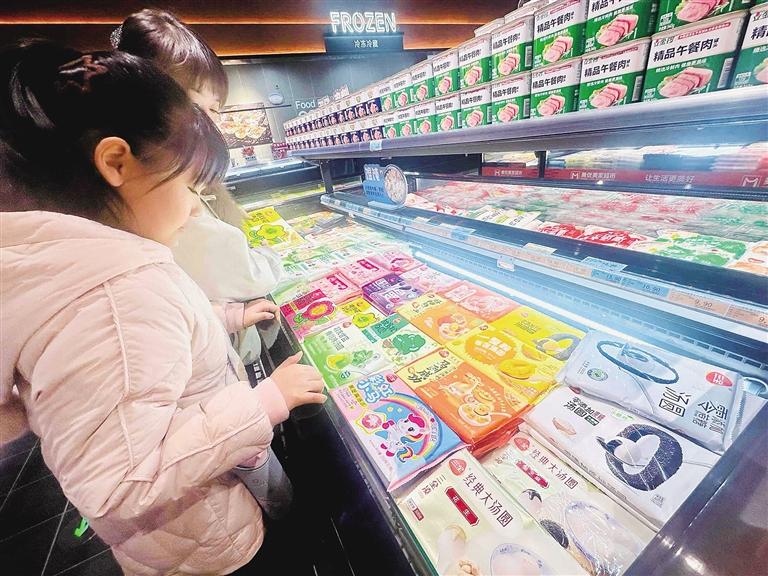 市民趙女士精心挑選果味元宵:“上次購買的這款爆心啵啵元宵口感清爽細(xì)膩,老人孩子都愛吃,我們還跟著教程做了不同吃法,這不馬上快元宵節(jié)又逢開學(xué),特意多囤一些。”市民李女士帶著孩子選購了一款“馬到成功”奧巧味元宵。“往年多吃黑芝麻、水果味的元宵,今年想嘗點(diǎn)新意,這款價(jià)格實(shí)惠,孩子也喜歡。”李女士說。