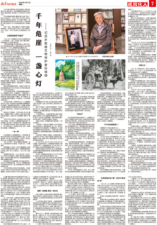 百歲的他鶴發(fā)童顏、儒雅風趣,自稱“老孫”,網名“白胡老頭”。自20世紀40年代從天府之國來到大漠敦煌,他終其一生“危崖千窟游”。他曾任敦煌研究院保護研究所首任所長,負責的加固工程讓荒廢約400年的莫高窟告別了坍塌的風險。