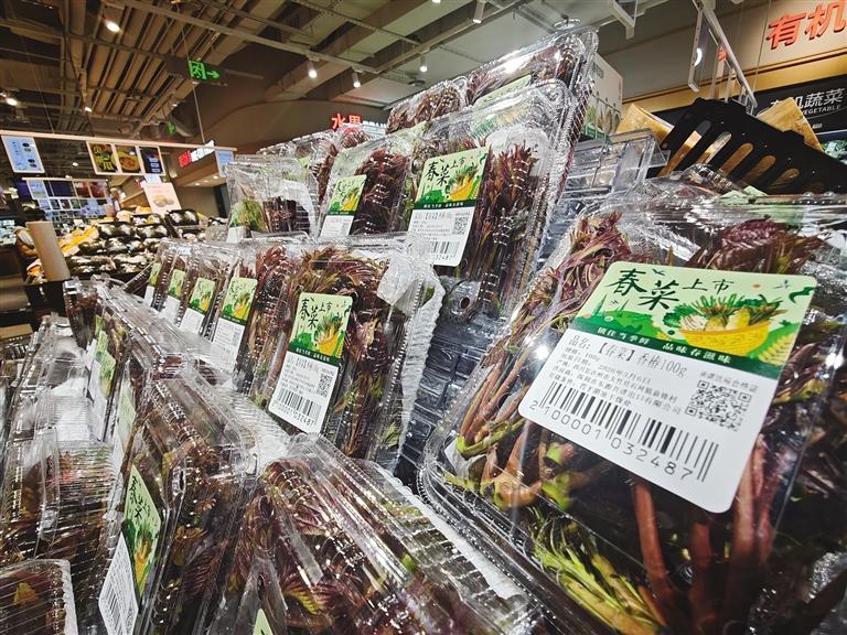 高端精品春菜價格居高不下。作為春菜“頂流”的香椿,價格依舊“領(lǐng)跑”。超市頭茬紅香椿零售價40—50元/斤,100g盒裝的售價8.9—13.9元,農(nóng)貿(mào)市場散裝香椿35—45元/斤,雖較春節(jié)期間百元一斤的價格有所回落,但仍遠(yuǎn)高于普通蔬菜;蘆筍頭零售價13—16元/斤,春筍7—12元/斤,茭白8—10元/斤,這類外地調(diào)入精品春菜,因采摘成本高、冷鏈運(yùn)輸損耗大、上市初期供應(yīng)量少,價格維持高位。商戶表示,香椿、蘆筍等春菜供應(yīng)期僅1—2個月,頭茬產(chǎn)量稀缺,“嘗鮮溢價”明顯,價格偏高屬正?,F(xiàn)象。